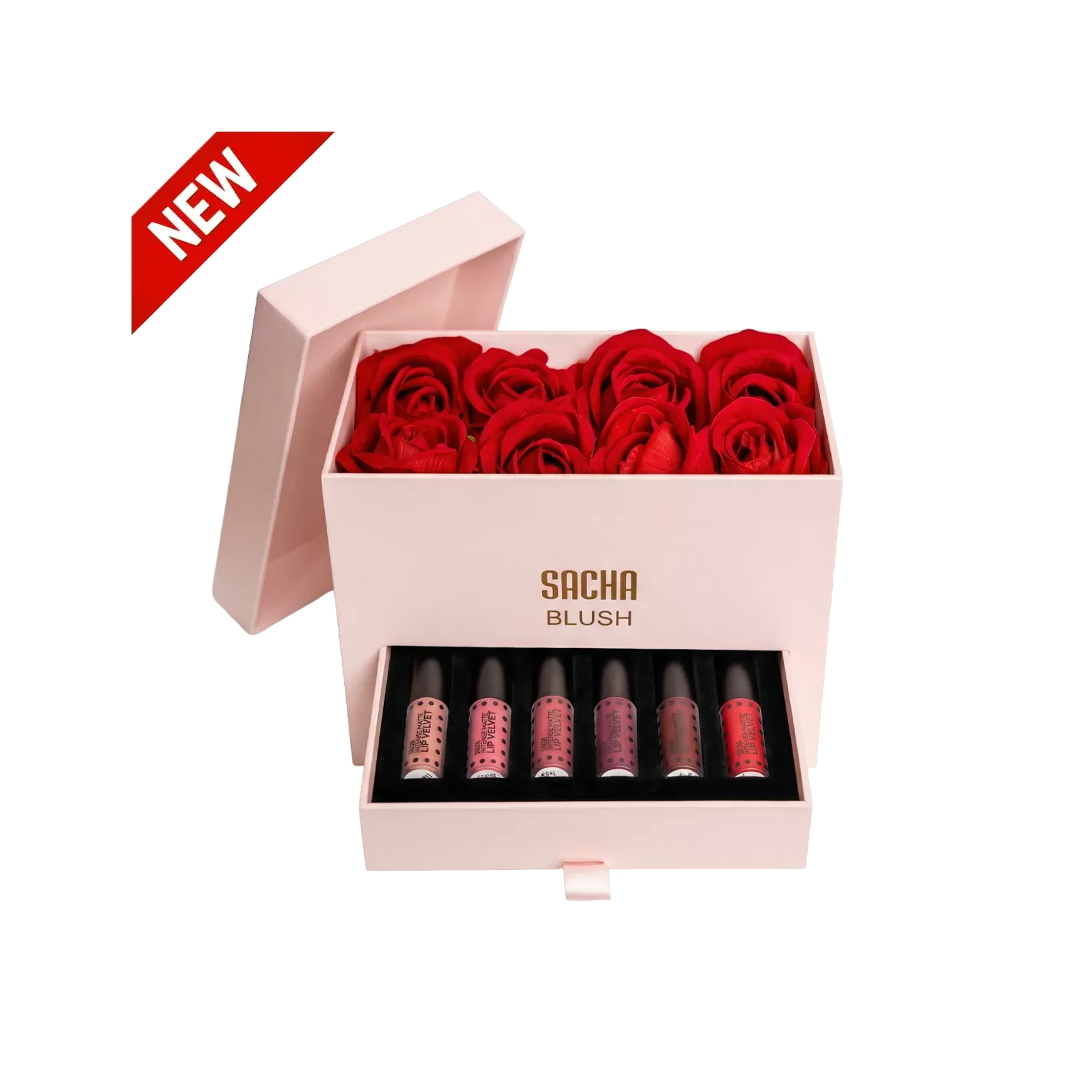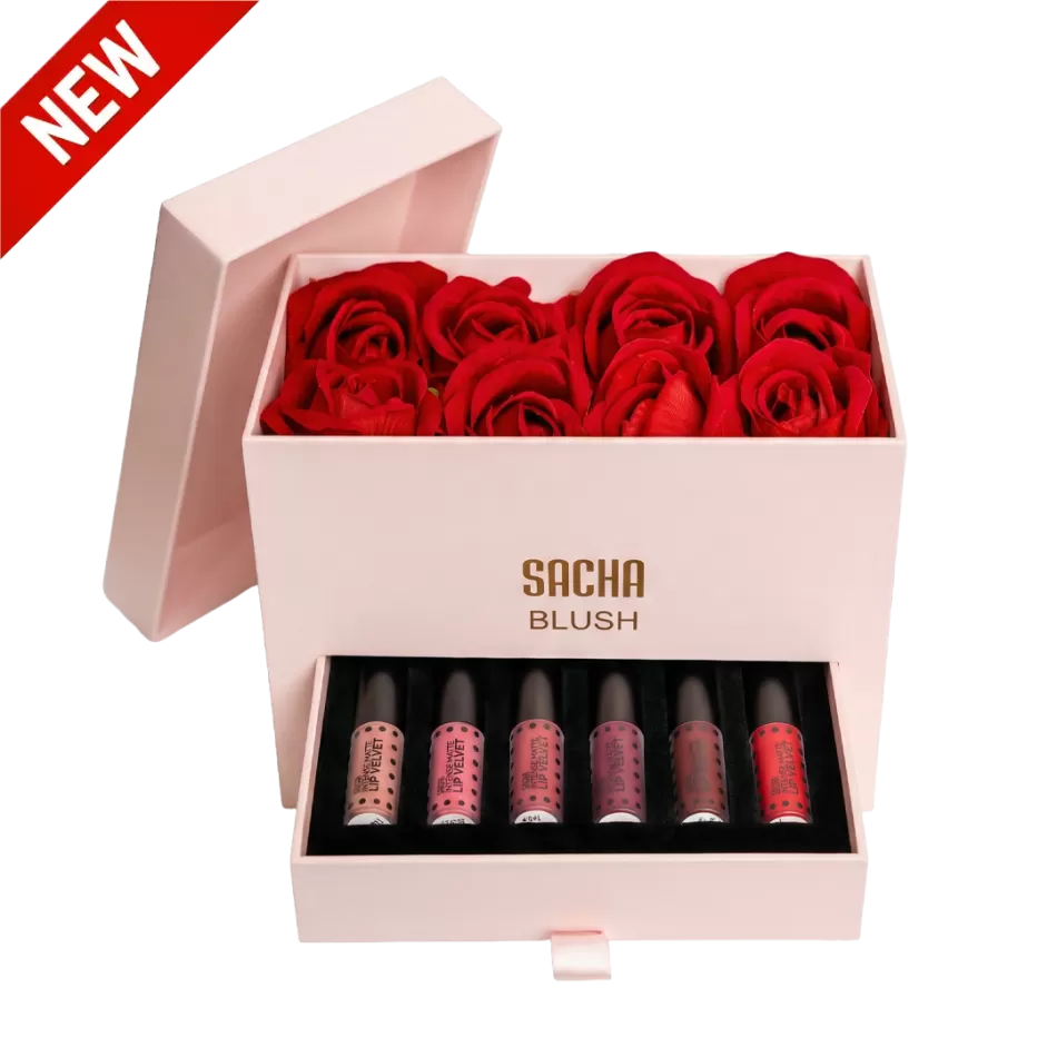 The Blush Box, where romance meets beauty. This limited-edition Valentine's keepsake is designed to delight. This beautifully curated box reveals six new Mini Intense Matte Lip Velvets in exclusive shades, nestled beneath a bed of roses that will last a lifetime. A love story of color, beauty and soft luxury.